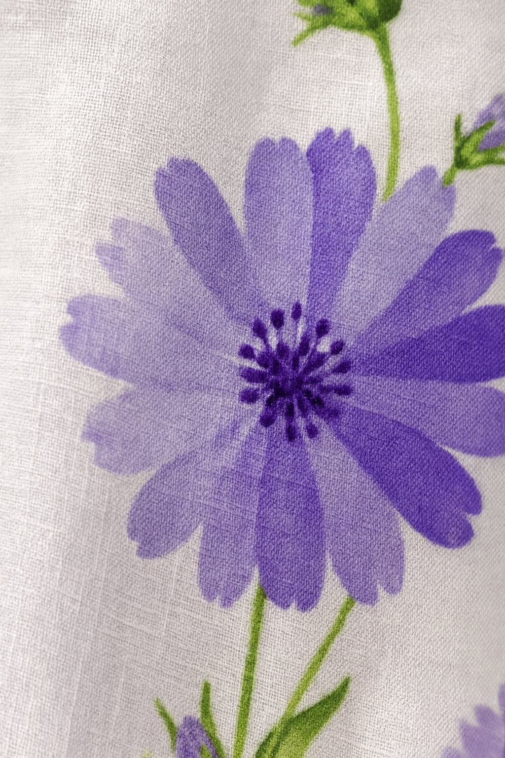 Su estampado floral en tonos violetas aporta color y feminidad sin caer en excesos, ideal para cualquier ocasión.
